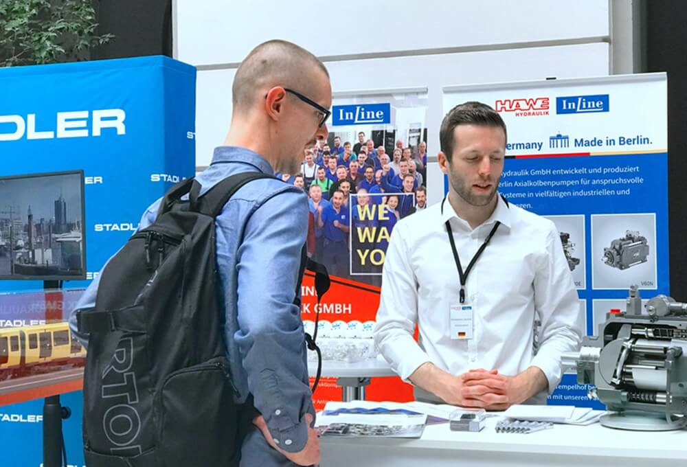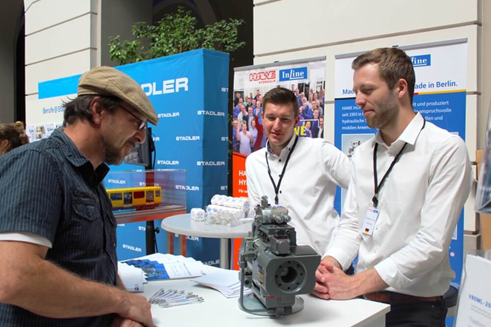 5月16日,恒立InLine液压公司与柏林当地众多的世界名企参与了一年一度的柏林工业之夜(Lange Nacht Der Industrie)活动。活动从柏林工业大学(Technische UniversitätBerlin)发起,InLine液压再次被选中参加这个活动,因此当日在柏林工业大学的校园招聘活动现场,InLine公司凭借深厚的历史文化底蕴和技术创造力受到了柏林工业大学学生的青睐与关注。